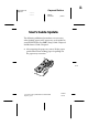 L Keywest Ref. Guide Rev.c A5 size 10-09-97 Chapter 1 DR, pass 0 About special media cleaning sheets A4 size cleaning sheets packed with EPSON special media can be used with this printer. Cleaning sheets are also available separately. Using a cleaning sheet can remove paper dust in the paper paths. If a paper tray is not feeding properly, use a cleaning sheet. Follow the steps below to use the cleaning sheet. 1.