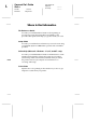 L Keywest Ref. Guide Rev.c A5 size 10-09-97 Proof Sign-off: Fujimori D.Grady _______ _______ cover-2 DR, pass 0 Where to Find Information This Reference Guide Provides you with detailed information about printing on special paper, using the printer driver and utilities, and provides other tips that will help you get the results you want. Setup Guide Provides you with the basic information you need to start using your EPSON Stylus Pro 5000 and its optional and consumable products.