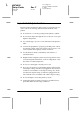 R4C4850 Setup Guide Proof Sign-off: DAI A. Kobayashi K. Araki K. Nishi DAI K. Ramsey SETTING.FM 8/21/00 Rev.C A5 size ❏ If ink smears on the paper, select Thick Paper as the media type setting. ❏ If you set the paper size or media type lever incorrectly, you may not get the print results you expect. Checking the printer nozzles 3 Follow the steps below to use the Nozzle Check utility. Note: Do not use the Nozzle Check utility while printing is in progress; otherwise, your printout may be marred.