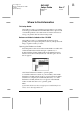 R4C4850 Setup Guide Proof Sign-off: DAI A. Kobayashi K. Araki K. Nishi DAI K. Ramsey FRONT.FM 9/4/00 Rev.C A5 size Where to Find Information This Setup Guide This guide provides you with the basic information you need to start using your EPSON STYLUS PRO 5500 and its optional and consumable products. Store this manual for future reference to set up your printer after it has been transported.