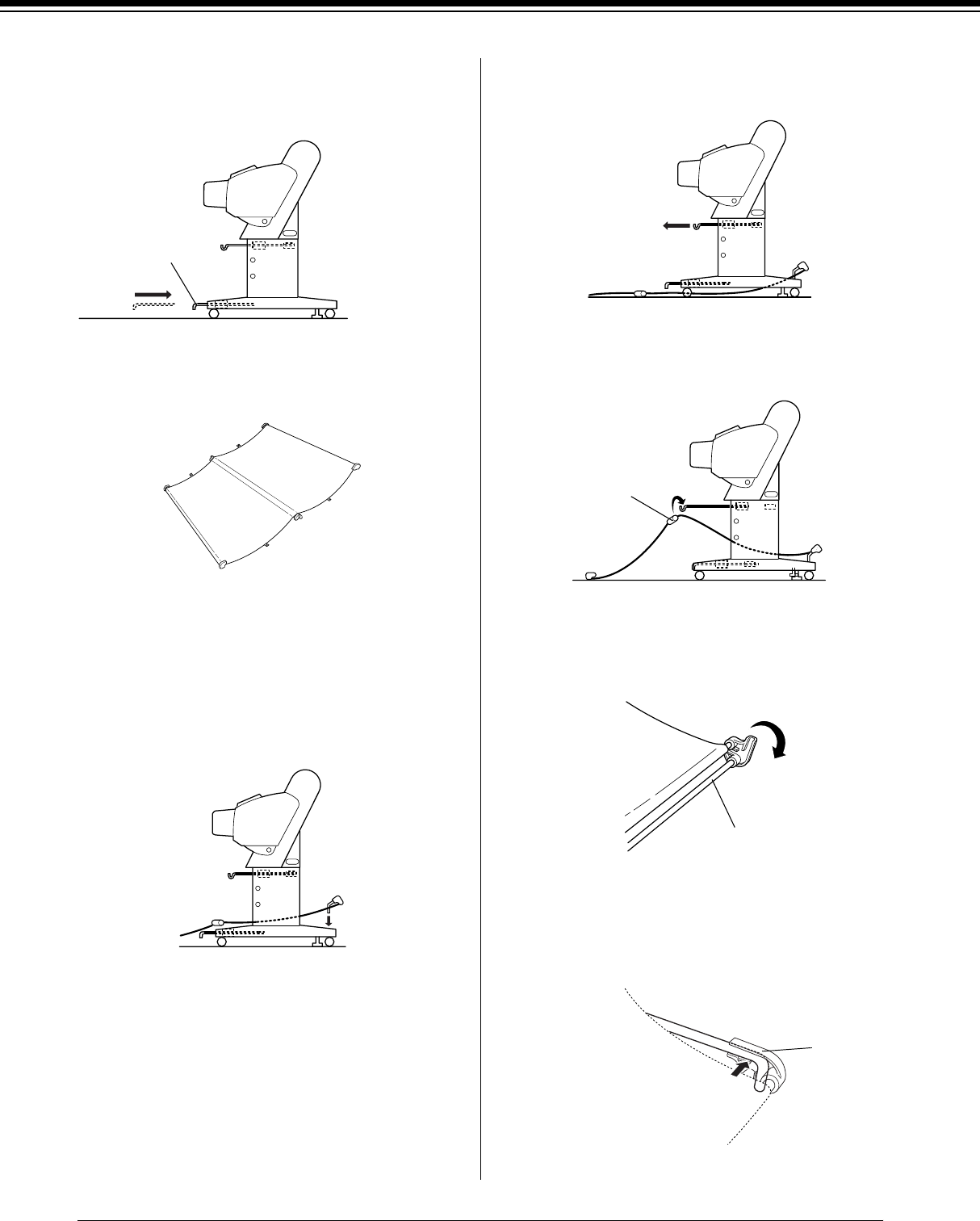 - 10. Haal het loshangende gedeelte van de opvang omhoog en hang de ringen op de haken, zoals in de volgende afbeelding.