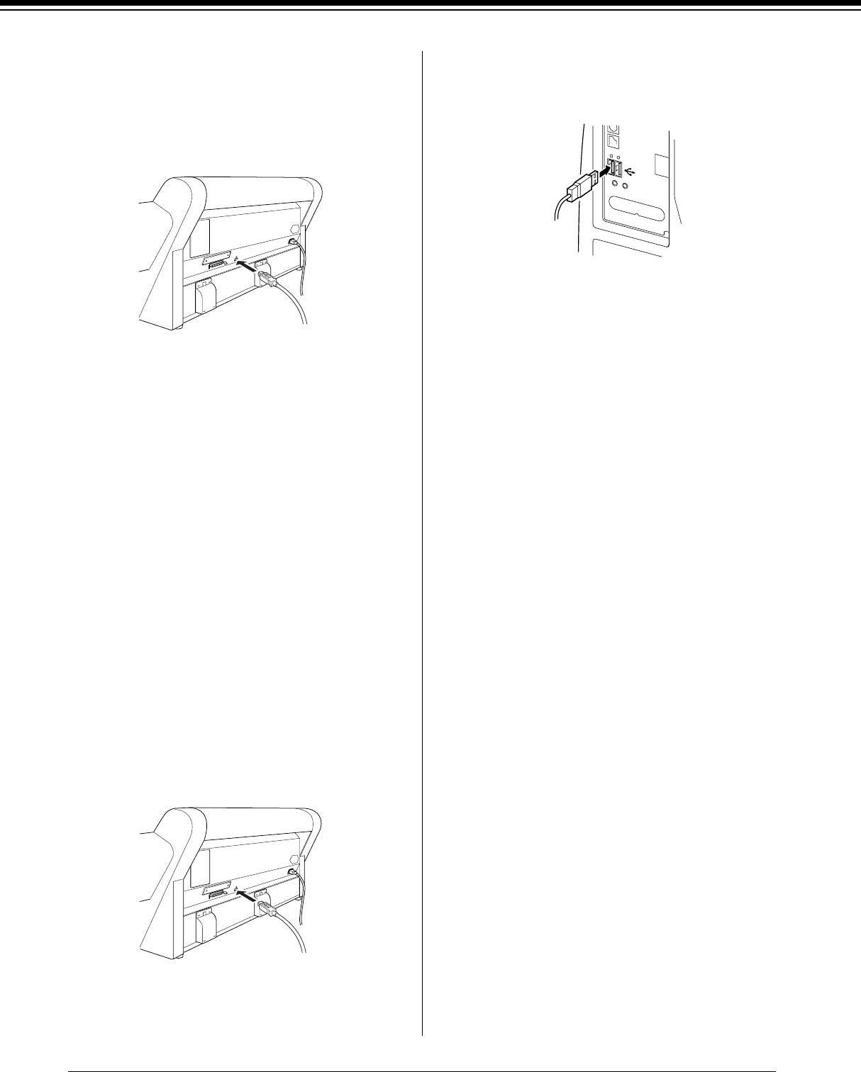 - 2. Sluit de kabelconnector stevig aan op de interfaceconnector van de printer. Knijp vervolgens de draadklemmetjes dicht tot deze aan weerszijden vastklikken. Als uw kabel een aarddraad heeft, sluit u deze aan op de aardaansluiting onder de i...