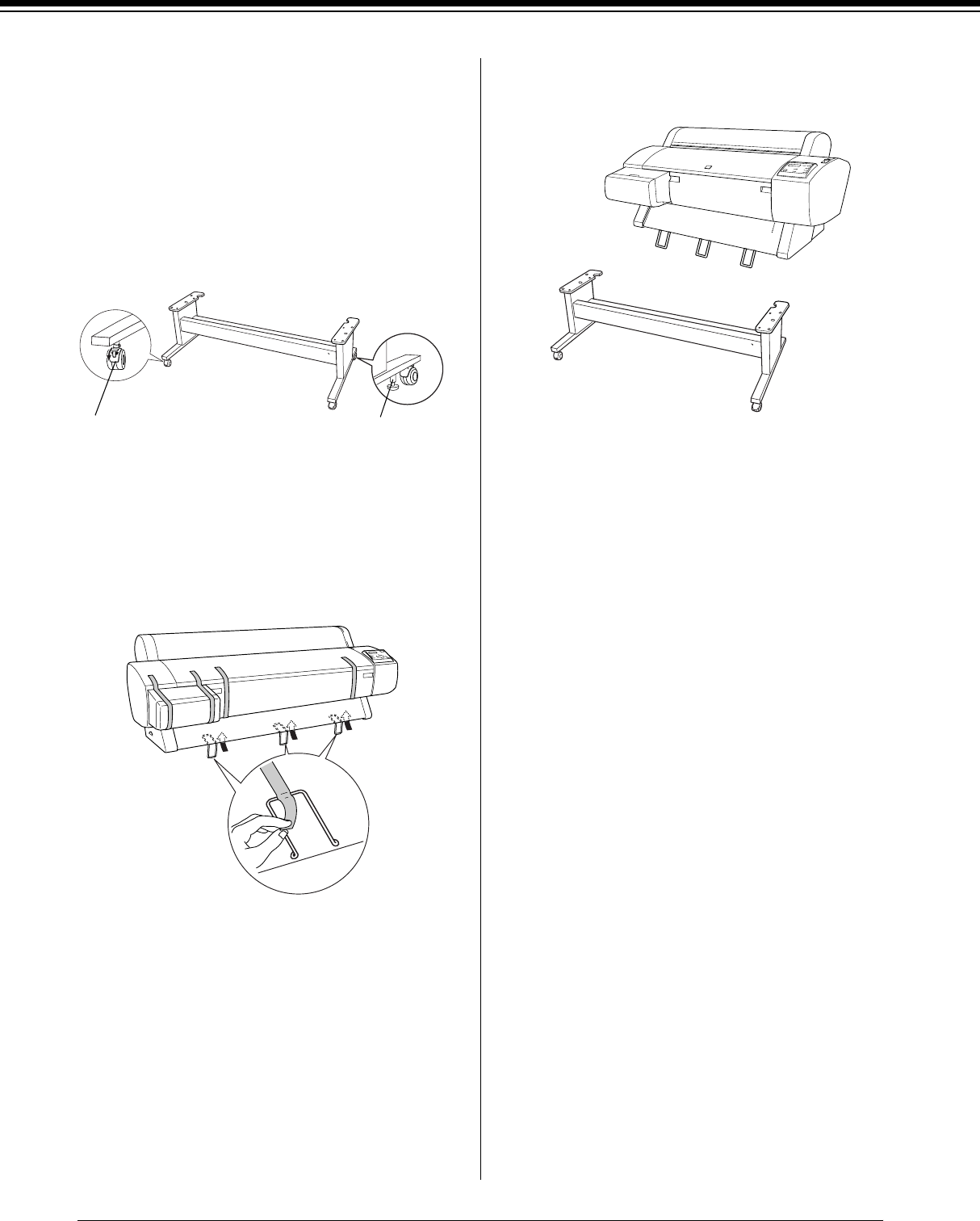 - 6. Ontgrendel de voorwieltjes en duw de stabilisatiepootjes weer in. Verplaats de printer vervolgens naar de plaats waar hij gebruikt gaat worden (niet te ver weg). Als de printer op zijn plek staat, vergrendelt u de wieltjes en trekt u de st...