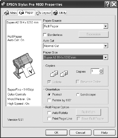 2. Select Roll Paper or Roll Paper (Banner) as the Paper Source setting.