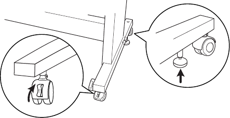 7. Carefully roll the printer to its new location. Lock the casters and extend