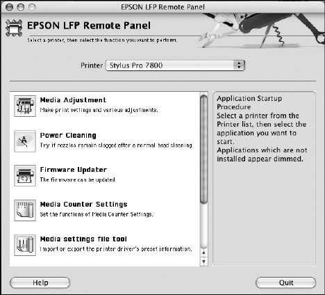 the LFP Remote Panel. Make sure your printer is selected.