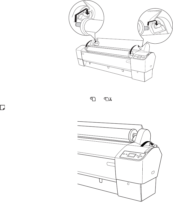 2. Place the roll paper in the printer as shown. (The gray end of the spindle