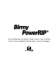 Testing PowerRlP 1. Set up your EPSON Stylus printer using the instructions in your EPSON User’s Guide. 2. Turn on the computer and start Windows. 3. Turn on your Stylus printer. 4. Double click on the Birmy icon in the PowerRlP window. When the program has finished loading and the cursor returns to the screen, minimize the Program Manager window by clicking on the down arrow in the upper left of the screen. 5. Double click on the Birmy icon. This will maximize the Power-RIP window. 6. Click on Printer.