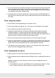 ❏ Avoid locations that are subject to direct sunlight, excessive heat, or humidity. ❏ When not in use, media should be removed from the printer, rewound, and inserted in its original packaging for storage. Leaving media in the printer for extended periods may cause it to deteriorate. Handling Media After Printing To maintain long lasting, high quality print results, note the following points. ❏ Do not rub or scratch the printed surface. If it is rubbed or scratched, the ink may peel off.