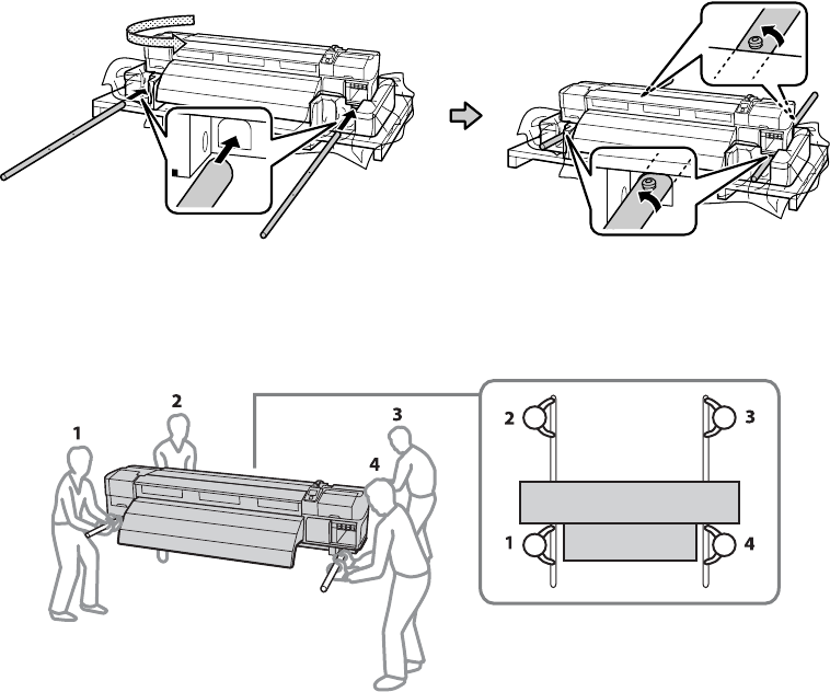 Caution: The printer is heavy. Use at least four people when lifting the printer.