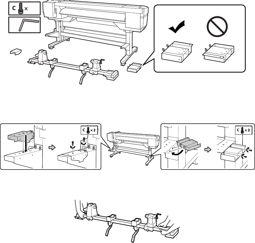 Attach the brackets to the back side of the printer with two C screws on each side as shown.