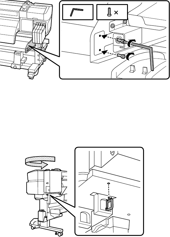 8. Contact a service engineer to attach the Ink Supply System Cover 1 and adjust the printer. Do not