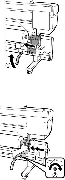 Pull up the roll holder lever, slide the roll holder into the media roll.