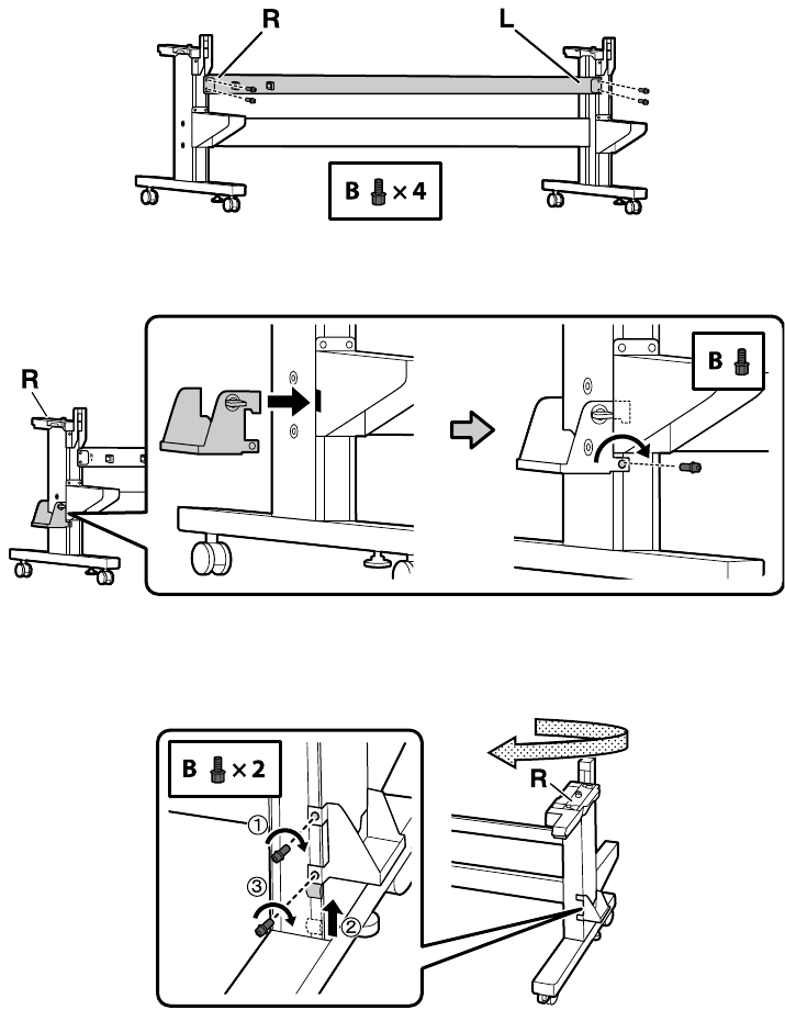 4. Attach the waste ink tank bracket and secure it with a B screw.