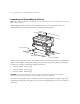10 | Attaching the Paper Basket 11. Use two nuts and two bolts to fasten the arm in place. 12. On the back side of the printer, pull the paper basket up so that the stack guides fit into the slots as shown. Then, hook the loops around the pins on the back of the stack guides to hold the basket in place. 13. Hook the loops on the sides of the basket to the pins on the back of the stand legs to secure the basket to the printer.