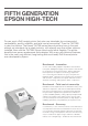 FIFTH GENERATION EPSON HIGH-TECH Do you want a PoS receipt printer that sets new standards for environmental compatibility, quality, reliability and total cost of ownership? Then the TM-T88V is your first choice. The Epson TM-T88 series thermal printers have in the past already set standards for a whole industry, with already over five million systems installed. Now with the TM-T88V, Epson launches its latest flagship. The printer benefits from proven predecessor technologies.