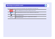 23 Monitoring window layout Error information: Shows the warning or problem status using the following icons. Lamp life warning* Lamp out High-temperature warning Lamp failure at power on Replace Air Filter High internal temperature error No Air Filter Internal (system) error Low Air Flow Fan error Air Flow Sensor Err. Sensor error Open lamp cover door error (lamp error) Other error *You can display the lamp life warning at any time preset at "Environment setup" in the "Tool" menu.