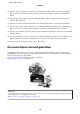 Gebruikershandleiding Uw printer en software onderhouden ❏ Open het deksel van de ADF en maak de rol en de binnenzijde van de ADF schoon met een droge, zachte, schone doek. De binnenzijde van de printer reinigen Als uw afdrukken inktvlekken vertonen, volgt u de onderstaande stappen om de rol in het apparaat te reinigen. op: !Let Raak de onderdelen binnen in de printer niet aan. c ❏Belangrijk: Pas op dat er geen water of andere vloeistoffen op de elektronische onderdelen terechtkomt.