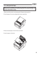 2-3. Loading the Roll Paper Notes: Be sure to use paper rolls that meet the specifications. Do not use paper rolls that have the paper glued to the core because the printer cannot detect the paper end correctly. (Turn off power switch) 1. Make sure that the printer is not receiving data; Otherwise, data may be lost. 2. Open the paper roll cover by pushing down the cover open button. 3. Remove the used paper roll core if there is one inside. 4. Insert new paper roll as shown.
