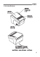 6. Specifications Appendix A : Specifications 6-1. General Specifications (1) Printing Method Direct line thermal printing. (2) Print speed 200mm/sec. (Approx 35.4LPS) (3) Dot density 180 DPI (Hor / Ver) 180 / 180 (0.142mm / 0.142mm dot) (4) Printing Width 180 DPI Max 72mm (512 dots) (5) Number of print columns. No. of columns 180 DPI Font “A” Font “B” 42 56 (6) Roll paper Refer to chapter 2 for details on the recommended roll Paper. Paper width : 50mm~82.5mm Roll diameter : Max.