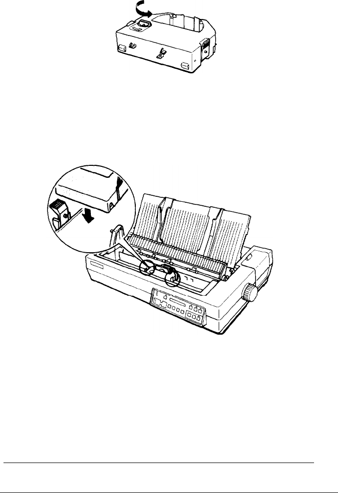 Turn the ribbon-tightening knob on the ribbon cartridge in the
