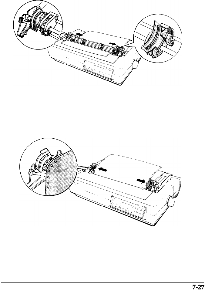Fit the holes of the paper over the tractor pins of the sprocket units,