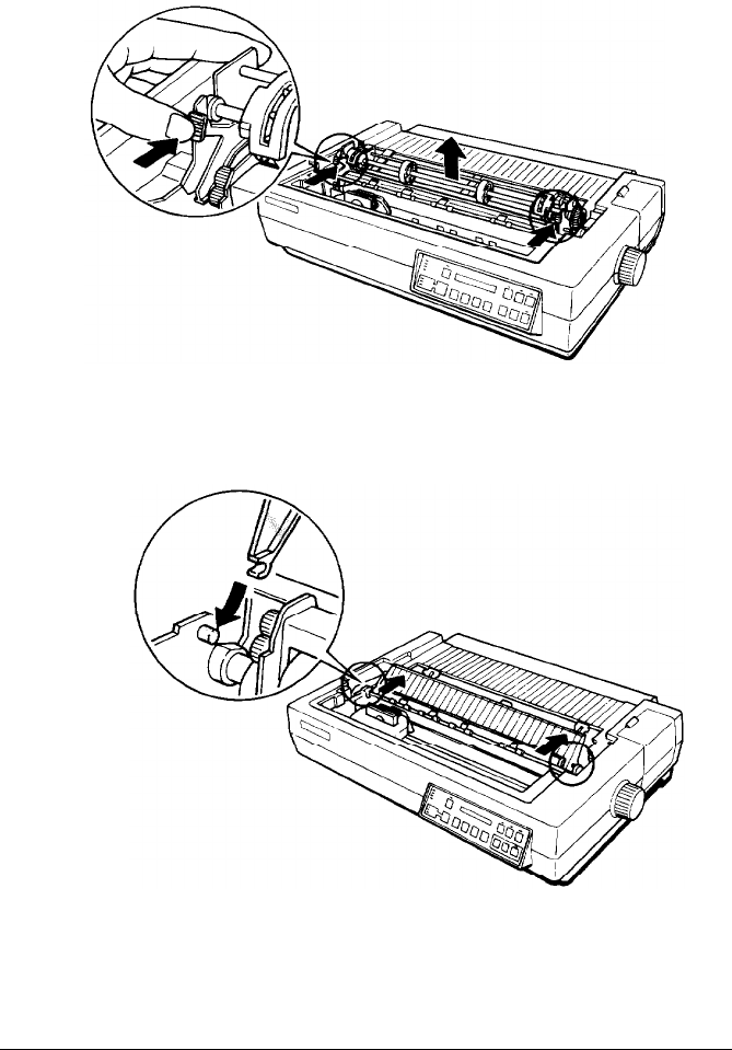 2. Replace the paper eject guide by fitting its notches onto the pins