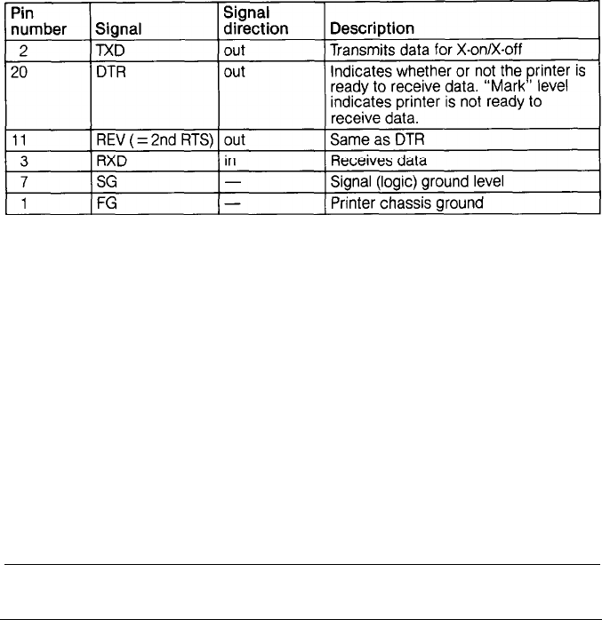 In this table, the direction of signals is given relative to the printer.