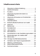 Inhaltsverzeichnis 1 2 3 4 Hinweise zu dieser Anleitung . . . . . . . . . . . . . . 4 Gefahrenhinweise . . . . . . . . . . . . . . . . . . . . . . . 4 Funktion . . . . . . . . . . . . . . . . . . . . . . . . . . . . . . 8 Allgemeine Systeminformation zu HomeMatic . . . . . . . . . . . . . . . . . . . . . . . . . . . 14 5 Allgemeine Hinweise zum Funkbetrieb . . . . . 14 6 Installation . . . . . . . . . . . . . . . . . . . . . . . . . . . 16 7 Inbetriebnahme . . . . . . . . . . . . . . . . . . . . . . .