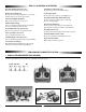 UPPER MAIN FRAME/RADIO TRAY/BODY SET PARTS LIST PART # DESCRIPTION QUANTITY 960001 960002 960009 960017 960029 960031 Autorotation Assembly Main Drive Gear 88T Main Rotor Shaft Main Shaft Bearing Block Upper Main Frame Servo Mounting Plates 1 1 1 1 2 4 960035 Upper Servo Tray 1 960072 960077 Rubber Grommet Linkage Set C 4 1 970004 970005 970008 970020 970022 Universal Ball Links Autorotation Shaft Hub Sleeve Main Shaft Collar Main Frame Standoff: 32mm Body Mounting Standoff 10 1 1 2 4 970024