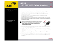 A515 15" TFT LCD Color Monitor BACK NEXT Contents 1. Introduction ...................................1/20 2. Safety Information .......................1/20 3. Installing the monitor ..................4/20 3-1. Packing List .........................................4/20 3-2. Selecting a suitable location .............5/20 3-3. Connecting the monitor ....................5/20 USB hub ..............................................7/20 3-4. Setting the refresh rate .....................