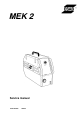 MEK 2 Edition 020531 Spare parts list Valid for serial no. 510 --xxx--xxxx to serial no. 826--xxx--xxxx Ordering numbers for MEK 2 0455 590 881 0455 590 883 MEK 2 MEK 2 Without water connection With water connection Spare parts are to be ordered through the nearest ESAB agency as per the list on the back of the cover. Kindly indicate type of unit, serial number, denominations and ordering numbers according to the spare parts list.