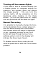 Turning off the camera lights If you wish to look at a backlit display (on a mobile phone or computer display for instance), the camera lights can reduce the image quality. You can turn the camera lights off by powering on the Quicklook while holding in the Mode button. To turn the lights back on, simply turn the Quicklook off and back on again.