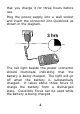 that you charge it for three hours before use. Plug the power supply into a wall socket and insert the connector into Quicklook as shown in the diagram. 3 hrs The red light beside the power connector should illuminate indicating that the battery is being charged. The light will go off when the battery is substantially charged. It takes about three hours to charge the battery from a discharged state. Quicklook Focus can be used while the battery is being charged.