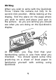 Writing When you wish to write with the Quicklook Focus, rotate the camera out fully to its second click position. While looking at the display, find the place on the page where you wish to write and place your pen in the picture. As you are writing you should see what you are doing on the Quicklook’s display. At the start, you may find that your handwriting varies in size from what you intended.