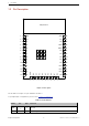 1 Overview 1.2 Pin Description Keepout Zone GND GND NC 33 7 NC GND 39 GND GND NC 32 8 IO0 GND GND GND NC 31 9 IO1 NC 30 10 NC NC 29 11 NC IO19 28 12 NC IO18 27 13 IO4 IO10 26 14 IO5 IO9 25 IO8 GND 24 NC IO7 6 23 34 NC RXD0 22 IO3 NC 5 21 35 NC TXD0 20 IO2 NC 4 19 36 NC NC 18 EN NC 3 17 37 IO6 NC 16 3V3 2 GND 38 GND 15 GND 1 Figure 1: Pin Layout The module has 39 pins. See pin definitions in Table 2.