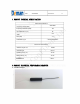 Date 31/07/2020 Version No. 1 PRODUCT TECHNICAL SPECIFICATION Electrical Specifications 2400-2500 Frequency Range (MHz) Frequency Bandvidth (MHz) 100 Input Iapendence ( Q ) 50 <2.5 VSIR Gain (dBi) Polarization Type >1.0 Vertical Polarization Mechanical Specifications Antenna Length (mm) 100mm Connect Type IPEX III Operating Temp ( ℃ ) -30-70 Storage Temp(℃) -30-70 Radome Color Black 2 PRODUCT ELECTRICAL PERFORMANCE PARAMETER 2.