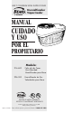 Cuidado y Mantenimiento IMPORTANTE: Recomendamos limpiar su humidificador semanalmente. Seguir las instrucciones. Los humidificadores proporcionan confort añadiendo humedad al aire seco y caliente en recintos encerrados. Para obtener el mayor beneficio de su humidificador y evitar su mal uso, seguir cuidadosamente todas las instrucciones, en particular las instrucciones de operación, cuidado y mantenimiento.