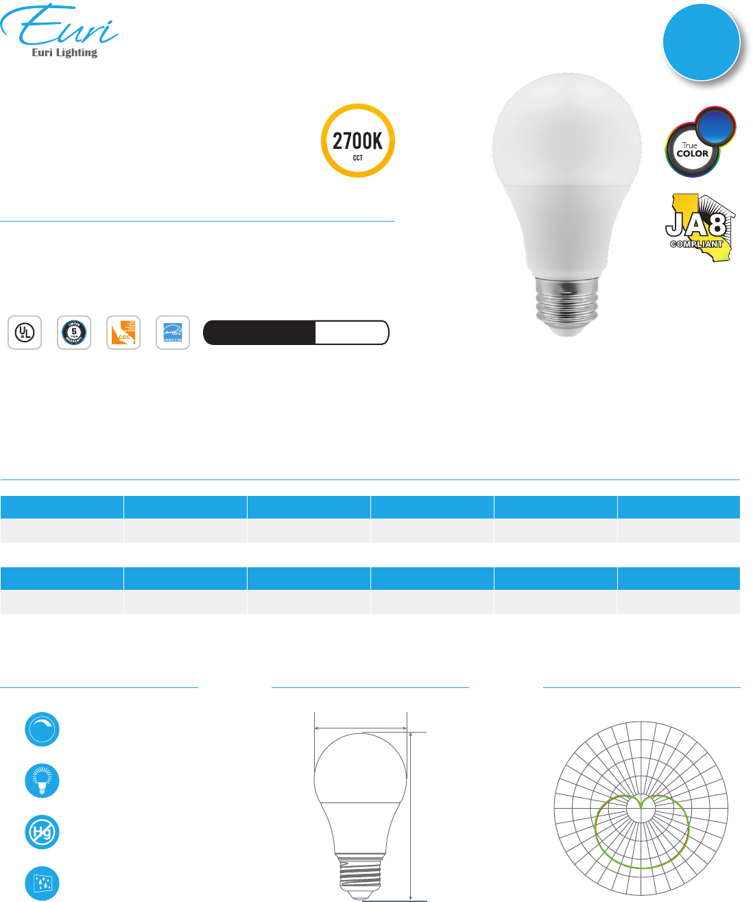 Part #: EBA19DM/H/9W/800/200D/27K/E26/CEC/2 Bulb Class: A19