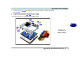 6. Gently pull the two release latches ( & ) on the sides of the memory socket in