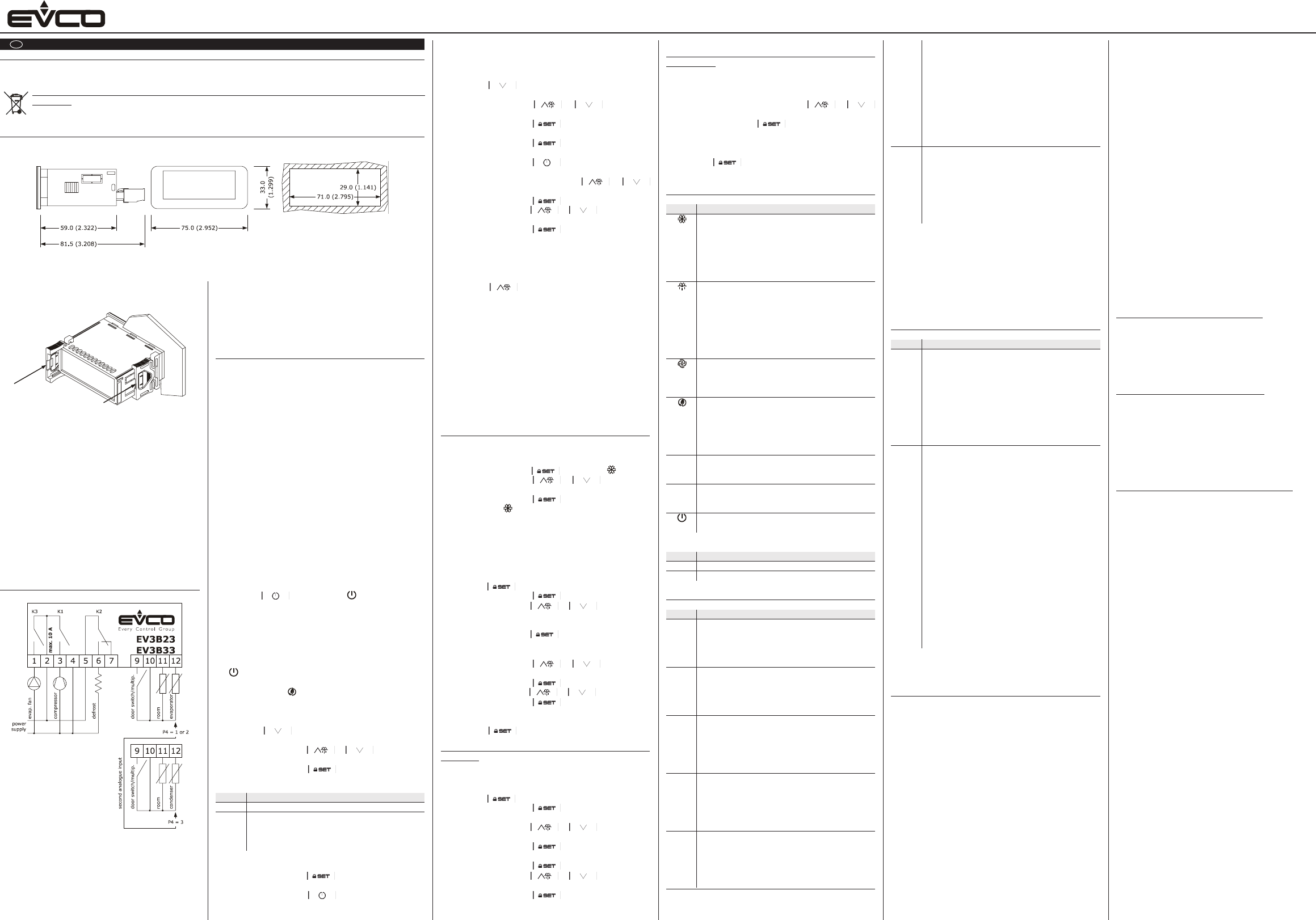EVCO S.p.A. | EV3B23/EV3B33 | Data sheet ver. 1.0 | Code 1043B33E103 | Page 1 of 2 | PT 43/14