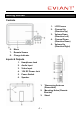 Getting Started Controls 1. 2. 3. 4. 5. 6. 7. 8. LCD Screen Channel Up (Direction Up) Volume Down (Direction Left) Channel Down (Direction Down) Volume Up (Direction Right) Menu Remote Sensor Charge Indicator Inputs & Outputs 1. 2. 3. 4. 5. 6. Headphone Jack Audio Input Video Input 12V DC Power Jack Power Switch Speaker 1. 2. 3.