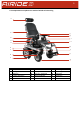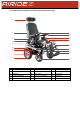10 2.5. Componenten en opbouw van uw Excel Airide Compact uitvoering 16 1 2 3 15 4 14 13 5 12 11 6 7 10 8 9 1 2 3 4 5 6 Bedieningskast Armpolster Kledingbeschermer Zitkussen Voetsteun Accu´s 7 8 9 10 11 12 Voetplaat Anti-‐tip wiel Aandrijfwiel Zwenkwiel Spatbord Vork t.b.v.