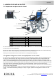 Algemeen 6. TRANSPORT EN VERVOER IN DE AUTO Bij het ontwerpen van uw Excel® rolstoel is er al rekening mee gehouden dat de stoel makkelijk mee te nemen moet zijn in de auto. Zo is de rolstoel vouwbaar gemaakt. Dit betekent dat de rolstoel in opgevouwen toestand slechts een breedte heeft van ongeveer 20 cm. Daarnaast is uw rolstoel standaard voorzien van weg zwenkbare en afneembare voet- of beensteunen.