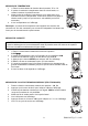 MESURES DE TEMPÉRATURE 1. 1.Placez le commutateur de fonction dans la position ºF ou ºC. 2. 2.Insérez la sonde de la température dans les crics d'entrée, en veillant à observer la polarité correcte. 3. Mettre la tête de sonde de la température sur la partie dont vous souhaitez mesurer la température. Continuez à mettre sur la partie la tête de sonde jusqu'à ce que la lecture soit stabilisé (environ 30 secondes). 4. 4.Lire la température sur l’affichage.