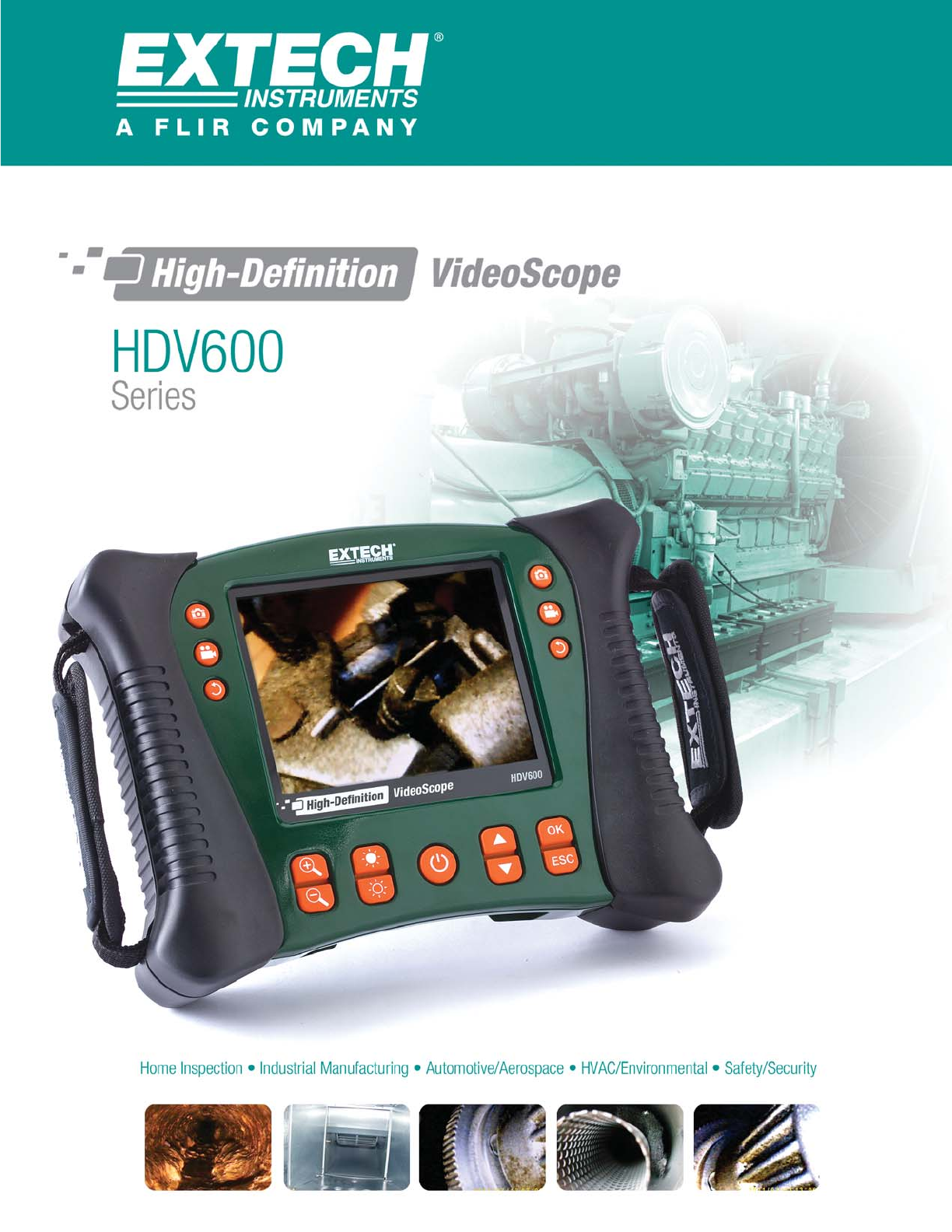 HIGH DEFINITION VIDEOSCOPES Inspect More. See More. Introducing the HDV600 Series from Extech From the makers of the best test and measurement easurement ment instruments comes a new generation of ducing the HDV600 videoscopes, designed high-definition inspection cameras. Introducing nd high-definition for ruggedness, upgradable versatility, and high-defi arge colo or clarity. HDV600 videoscopes feature a large color ndset display, SD memory, LED illuminated handset ndsets.