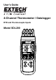 Introduction Congratulations on your purchase of the Extech SDL200 Thermometer, an SD Logger Series meter. This meter displays and stores temperature readings from up to four (4) Type K, J, T, E, R, or S thermocouple temperature probes and two (2) Pt100 RTD probes. Logged data readings are stored on an SD card for transfer to a PC. In addition, an RS232 port allows data streaming to a PC. This meter is shipped fully tested and calibrated and, with proper use, will provide years of reliable service.