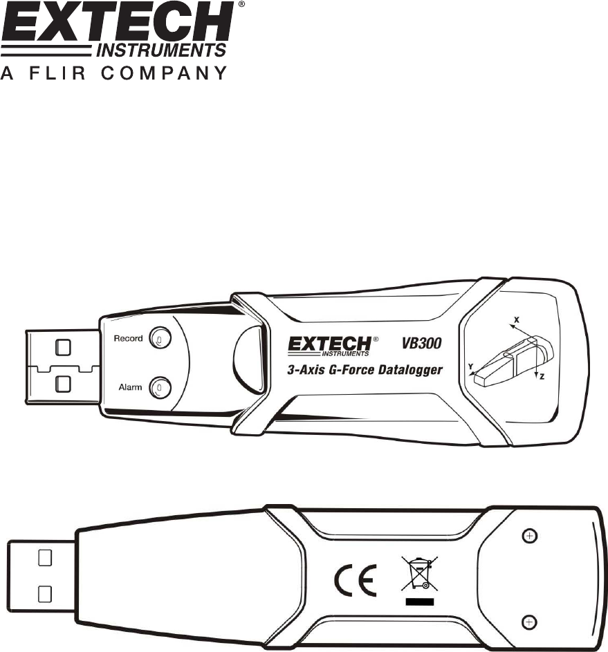 Introducción Agradecemos su compra del Registrador de datos de Fuerza G modelo VB300. El Modelo VB300 puede medir y registrar lecturas de choques y vibración (aceleración) en su escala de medición ± 18g. Este dispositivo puede registrar fuerza G en 3 ejes y los picos relacionados para suministrar un historial de condiciones de choche y vibración. El reloj de tiempo real suministra marcas de tiempo para todos los datos.