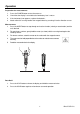 Meter Description 1. Display 2. Power Button 3. Hold Button 4. Function Button 5. Battery Cover/Compartment 5 6. Vibration Sensor 7. Sensing Head 8. Magnetic Base 1 2 3 4 6 8 7 Display Icons HOLD HOLD has been activated ACC Acceleration with units : m/s , ft/s , g VEL Velocity with units: mm/s, cm /s, inch/s 2 2 Low battery 3 VB400-EU-EN-V1.