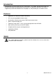 Meter Description 1. Display 2. Power Button 3. Hold Button 4. Function Button 5. Battery Cover/Compartment 5 6. Vibration Sensor 7. Sensing Head 8. Magnetic Base 1 2 3 4 6 8 7 Display Icons HOLD HOLD has been activated ACC Acceleration with units : m/s2, ft/s2, g VEL Velocity with units: mm/s, cm /s, inch/s Low battery 3 VB400-EU-EN-V1.